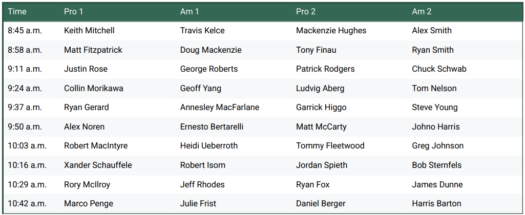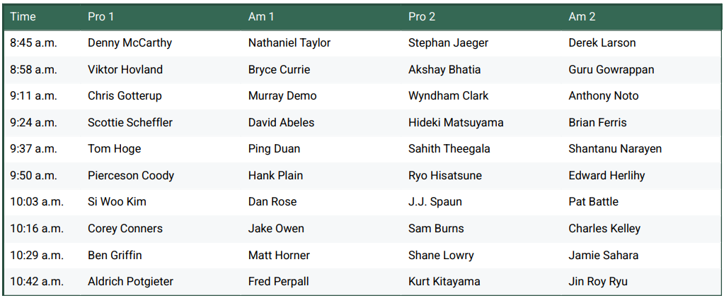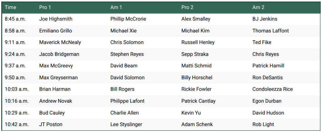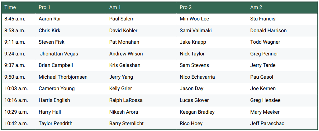 Thursday Round 1 Tee Times(PST)